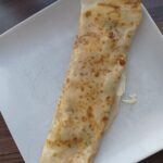 – With a ladle, take some batter and incline the frying pan to allow the batter to spread on the whole surface. Let the crêpe cook to your taste, then return it, to cook the other side. Lower the heat, and put the filling of your choice, on one half of the crêpe.