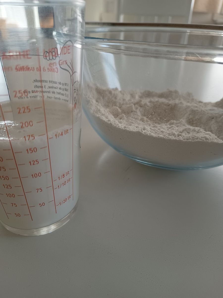 – Put the flour in a salad bowl. Add, gradually, the milk. Mix, if necessary, with a hand mixer.