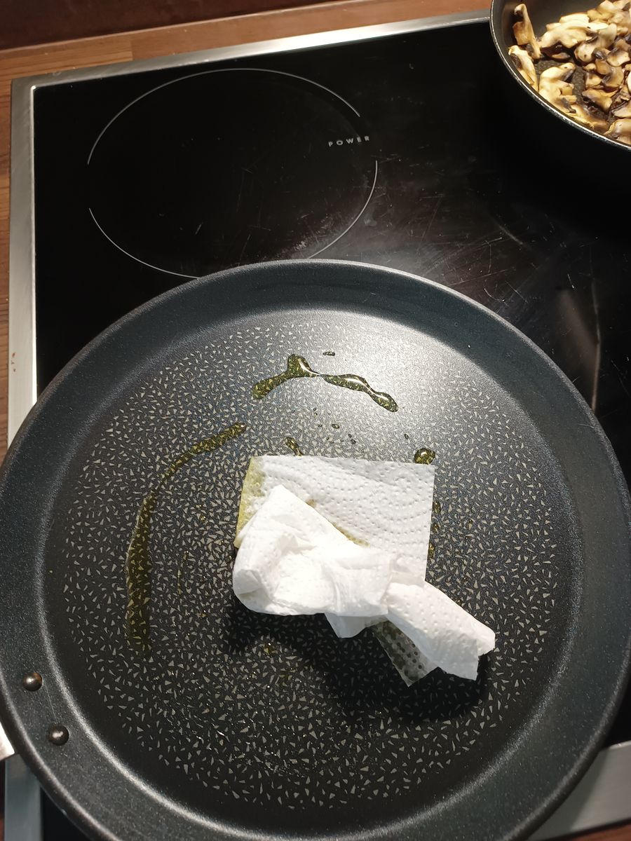 – Let the frying pan get a bit warm, then add oil and spread the oil using paper towel for instance. The secret is to wait until the frying pan is warm enough, before adding the batter.